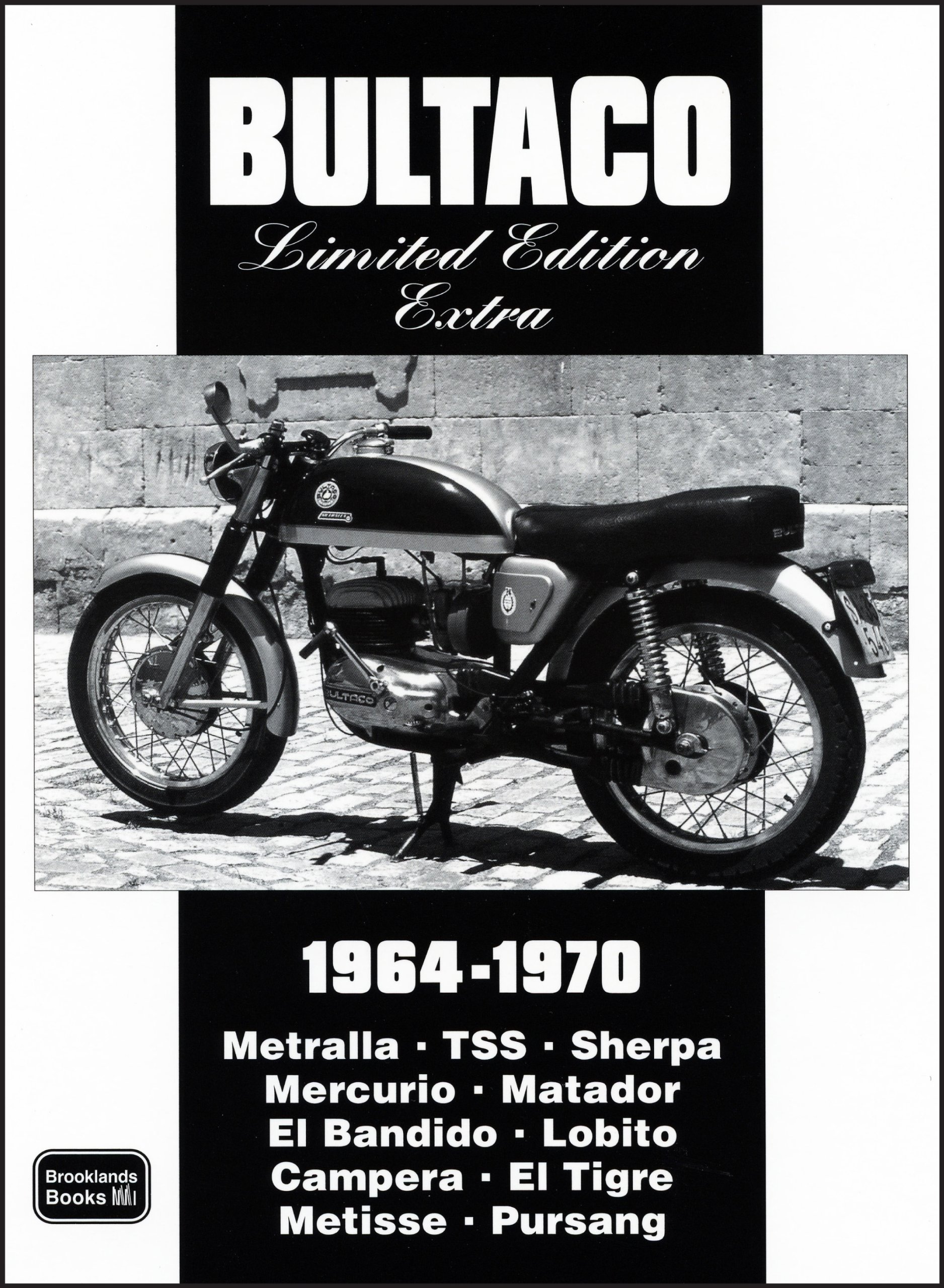 A portfolio of 31 contemporary articles traces the progress of Bultaco production in the 60s. Included are road, trail & track tests, new model reports plus articles on Bultaco’s history and racing.