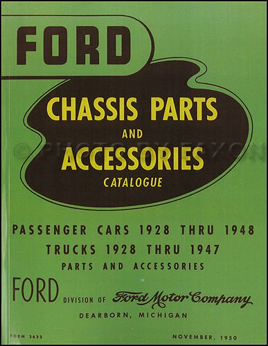 This is a high quality reproduction of the factory parts book known to collectors as the “Green Bible” of vintage Ford parts. It was written by Ford for the parts departments at their dealerships. You will find the original part numbers, which are still useful today because most parts vendors still use the original manufacturer’s numbers to keep track of their parts. Use this book to make your search for parts both quicker and easier. The illustrations in the book will help you identify parts, and the exploded views can aid you with the assembly or disassembly of some parts of the vehicle. You will find parts for your entire vehicle except for the body, including: wheels, hubs, drums, brakes, front axle, steering gear, rear axle, coupling shaft, frame, muffler, springs, engine, transmission, clutch, radiator, fuel system, generator, battery, starting motor, distributor, ignition coil, lamps & wiring, fenders, hood, windshield wiper, shock absorbers, standard parts, bumpers, and accessories. You will also find specifications for and dimensions of most parts listed. Find out if the parts on your car and the parts you are buying are original and complete. Covers all Ford Model A & AA, V8 & 4-cylinder Cars, Pickup & Commercial Truck models, and even school buses. This manual works well as a model year interchange manual!!! There are exploded view illustrations throughout this 802 page book. Buy now for the best parts book for your vintage Ford.