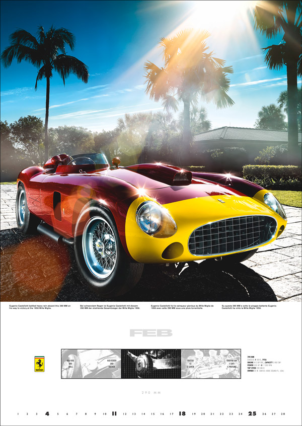 We are pleased to be the exclusive North American distributor of Günther Raupp’s calendars. In addition to the sample photographs seen above, we invite you to review the full twelve months of Ferraris at Günther Raupp’s Web site, www.raupp.com.