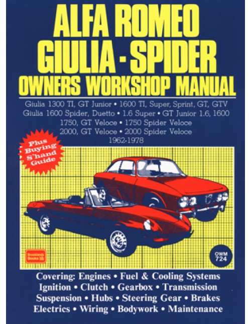Re-issue of Autobooks manual. Covers Giulia 1300TI, GT Junior 67-72, Giulia 1600TI, Super 62-72, Giulia 1600 Sprint GT, GTV 63-68, Giulia 1600 Spider, Duetto 62-68, plus many more!