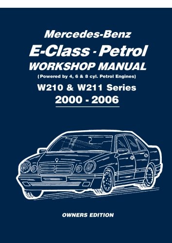 This Owners Edition Workshop Manual covers the Mercedes-Benz E Class Petrol W210 and W211 Series from 2000 to 2006, fitted with the 1.8, 2.0, 2.6, 2.8, 3.2, 3.5, 4.3 and 5.0 Litre, 111, 112, 113, 271 and 272, with four, six and eight cylinder petrol engine. It has been specially written for the practical owner who wants to maintain a vehicle in first-class condition and carry out the bulk of his or her own servicing and repairs. Comprehensive step-by-step instructions are provided for service and overhaul operations to guide the reader through what might otherwise be unfamiliar and complicated tasks. Numerous drawings are included to amplify the text. With 190 pages, well illustrated. Softbound.