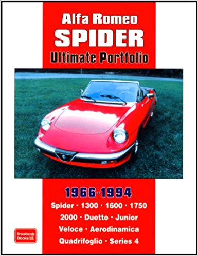 This portfolio traces the illustrious life of one of Italy’s most successful sportscars – the Alfa Romeo Spider. Includes road and comparison tests, new model introductions and updates, specifications, and full performance and technical data. Models covered: Duetto, Junior, Veloce and Quadrifoglio fitted with 1300, 1600, 1750 and 2000 cc engines. 216 pages, approx. 80 color and 200 black and white photos. Softbound.