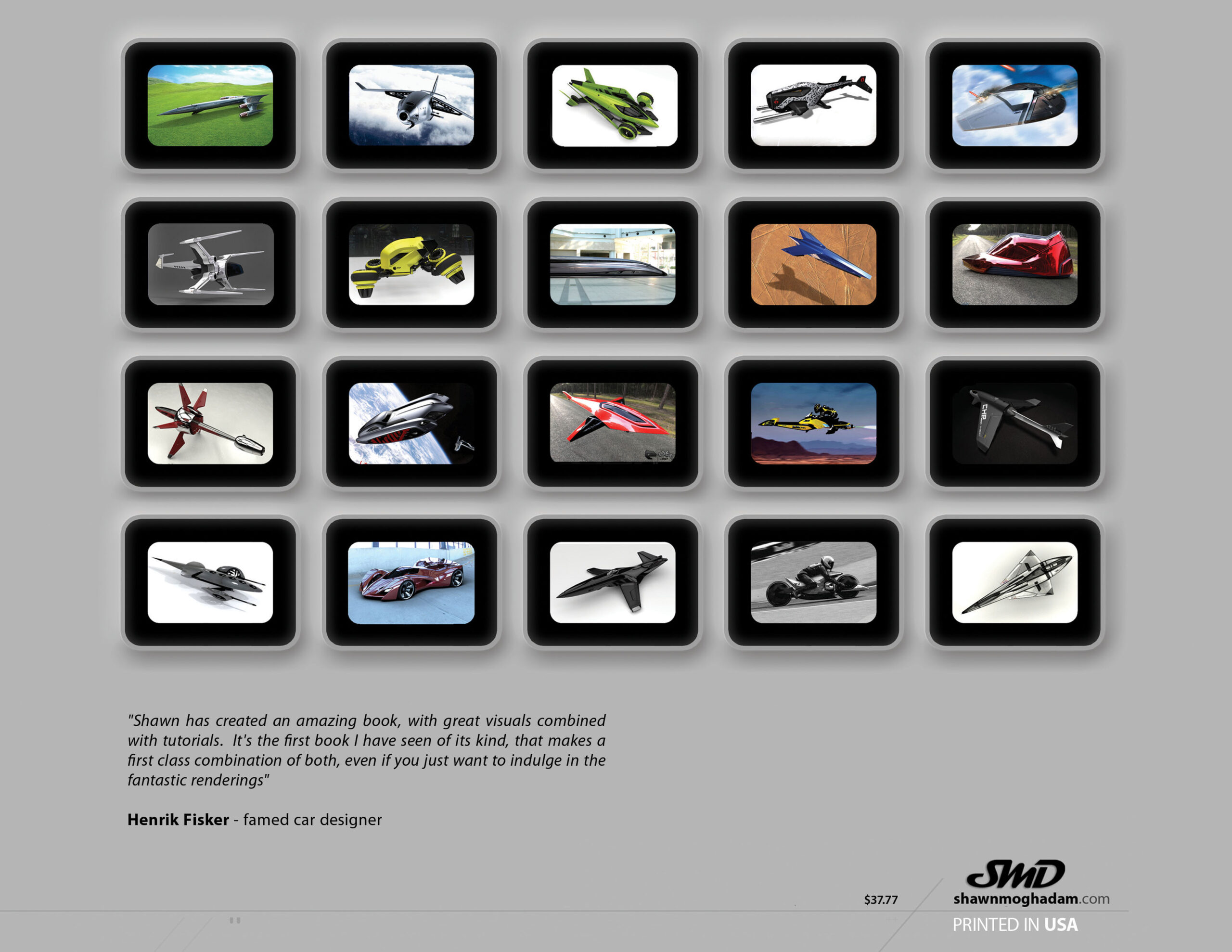 You’ll discover 20 new and different vehicles in photo-like clarity. Vehicles like drones, flying cars, trains, aircraft, spaceships, motorcycles, and other futuristic vehicle concepts. Also included are easy to understand tips and illustrations for creating your own dynamic products, from the ground up.