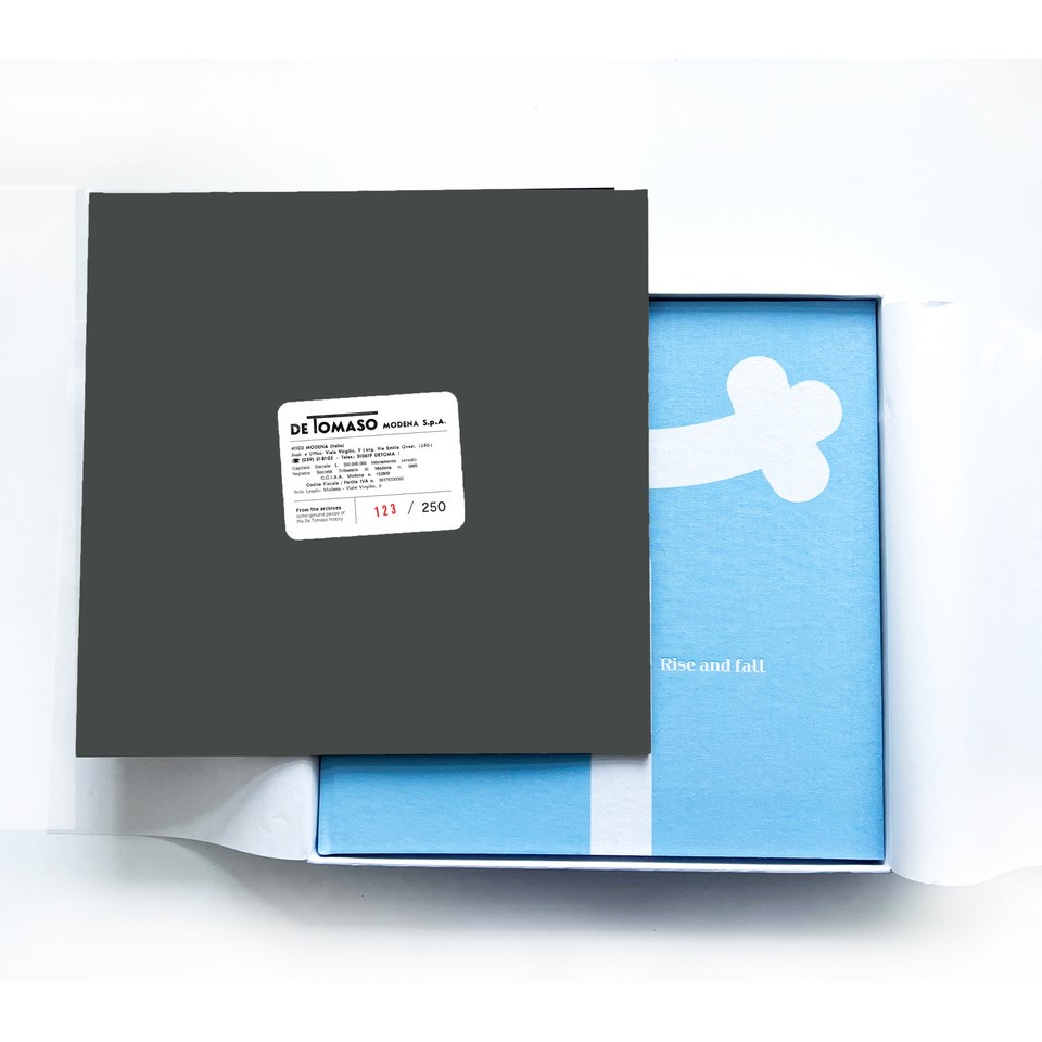 The archive edition comes in a luxury box, limited to 250 numbered copies only. Aside from the book, this box includes a bespoke folder with 5 genuine documents from the de Tomaso archive – invoices, telexes, internal notes, engine adjustment notes,….