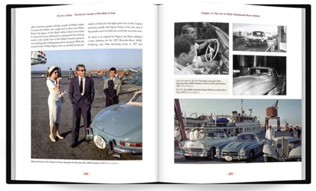In his broad spanning work, Iranian automotive historian Borzou Sepasi traces the royal garage of each Iranian Shah, starting with Mozaffar ad-Din Shah Qajar in 1900, who despite importing the first car, forbade drivers from going faster than carriages, and all the way up to the 1979 revolution. In an important postscript, the fate of many of the cars covered in the book following the end of monarchical rule in Iran, are shown.