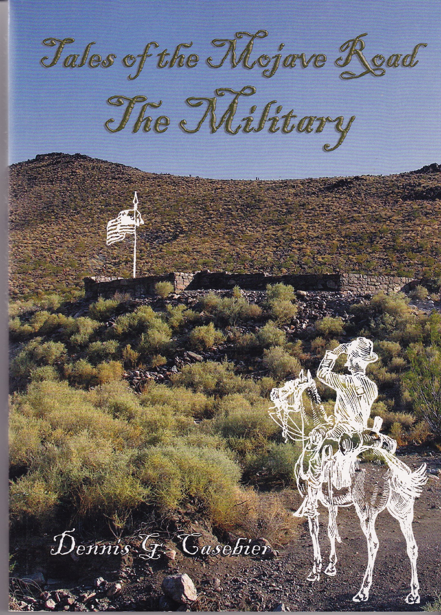 This book details the history of the Mojave Road forts established across the East Mojave by the U. S. Army starting in 1859. These lonely posts were built to protect settlers, miners, and the mails from Indian resistance. They mark a path of western migration across a harsh and unforgiving land. Published April 2007. In 1859, the U. S. Army began establishing a line of fortifications stretching across the East Mojave to protect settlers, miners, and the mails in one the most harsh and remote desert regions of the American frontier. Tales of the Mojave Road: The Military recounts the stories of the bluecoated soldiers manning these lonely military outposts on the Mojave Road. These narratives have been painstakingly resconstructed from detailed research in the records of the United States Army, National Archives and other sources, This is the rich military history behind the remnants of the fast-disappearing Army artifacts of the Mojave Desert. The Military was researched and authored by renowned desert historian Dennis Casebier. The book is perfection bound, printed on high quality paper, containing 238 pages with a full color cover featuring a beautiful modern day image of Fort Piute. Inside is a historic map, drawn by Henry Martyn Robert in 1869, depicting the Mojave Road from the Pacific Coast to the Colorado River. The book features a portraiture section of the military men profiled in the narrative, is illustrated with photographs and period line art, and is enriched with bibliographical references and an index.