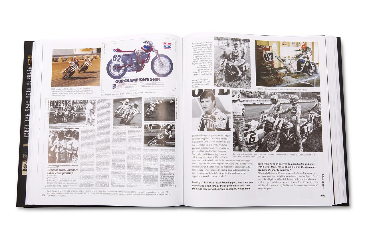Get the complete history of Honda’s involvement in dirt track racing, during the ‘80s and ‘90s. The premium hardcover book with dust jacket cover will be limited to 1,000 printed copies. Includes over 500 pages of compelling interviews and first-hand accounts of when Honda entered dirt track racing, leading to their development of the legendary Honda RS750D dirt tracker and fueling the Honda versus Harley rivalry, an iconic chapter in dirt track racing history. The story is told largely in the form of 60 plus interviews with some (unfortunately not all) of the participants, A large selection of photographs accompanies the narrative along with copies of period journalism.